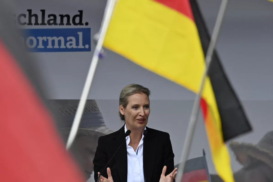 La coprésidente de l’Alternative pour l’Allemagne (AfD), Alice Weidel. JOHN MACDOUGALL / AFP
