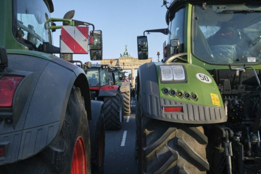 Le 8 janvier dernier, les agriculteurs allemands ont manifesté devant la porte de Brandebourg à Berlin pour protester contre la réduction d’une subvention sur le fioul agricole – Crédits : Flickr Matthias Berg CC BY-NC-ND 2.0 Deed