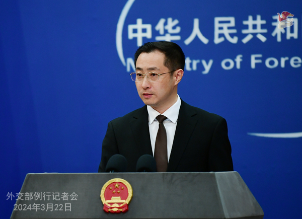 Conférence de presse du 22 mars 2024 tenue par le porte-parole du ministère des Affaires étrangères Lin Jian