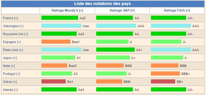 Faisons le point sur les notes souveraines des Etats-Unis et de quelques pays européens.