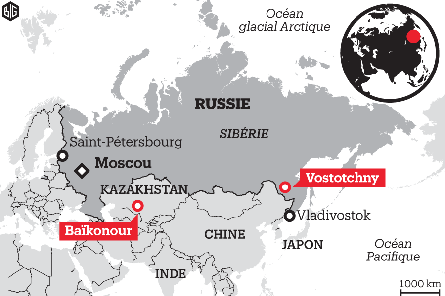 carte le cosmodrome de Vostochny.