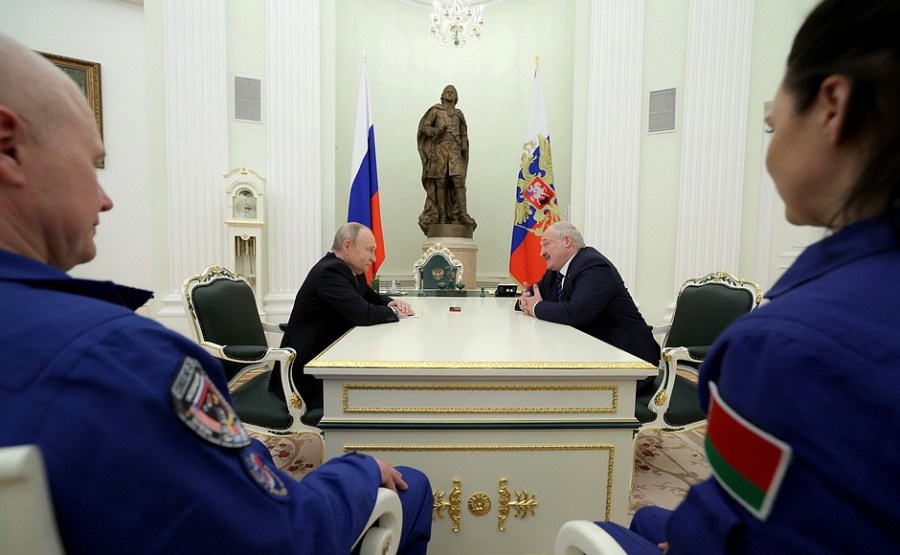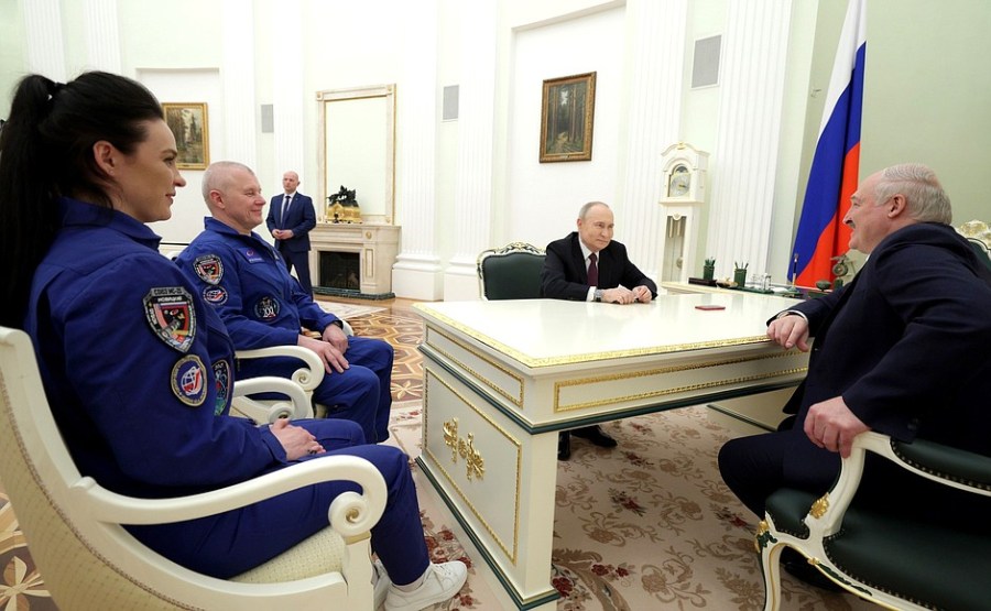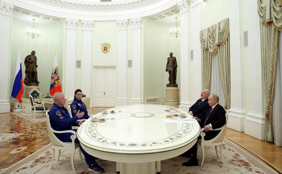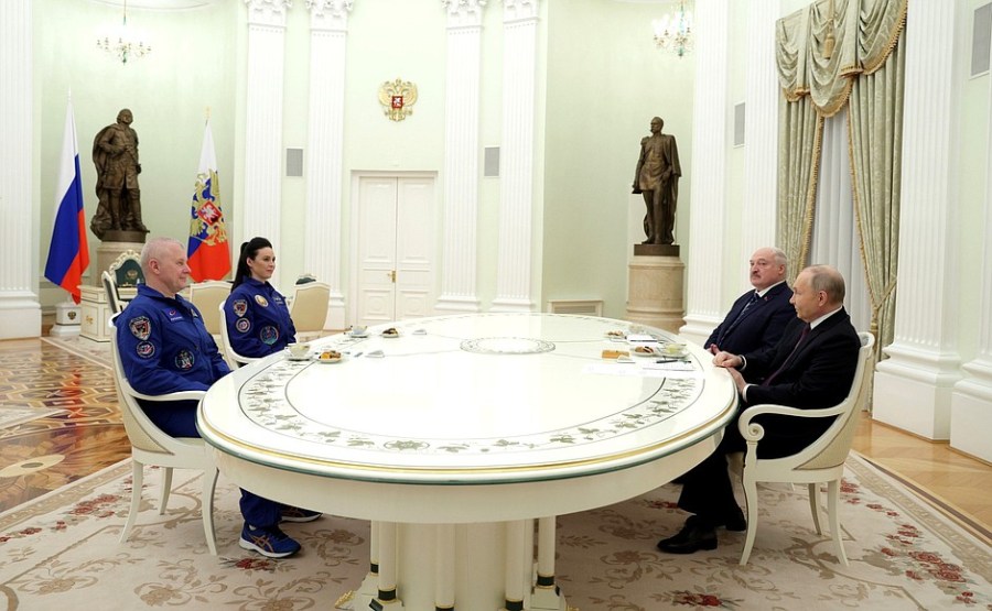 Vladimir Poutine et le président biélorusse Alexandre Loukachenko ont rencontré les membres de l’équipage de la 21e expédition en visite à la Station spatiale internationale, le commandant de l’expédition et pilote-cosmonaute Héros de Russie Oleg Novitsky et l’hôtesse de l’air et instructeur de la compagnie biélorusse Belavia Airlines Marina Vasilevskaya.