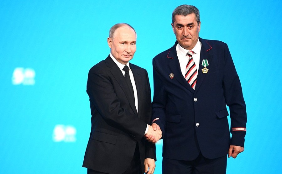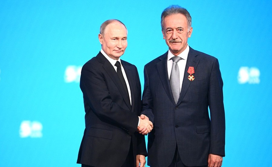 18 Vusal Makhmud ogly Ismailzade, directeur général de la société de gestion Bamstroymekhanizatsiya, lors du gala célébrant les 50 ans du début de la construction du chemin de fer Baïkal-Amour. Le personnel du groupe d’entreprises 1520 reçoit l’Ordre du travail vaillant. Photo : Valéry Sharifulin, TASS