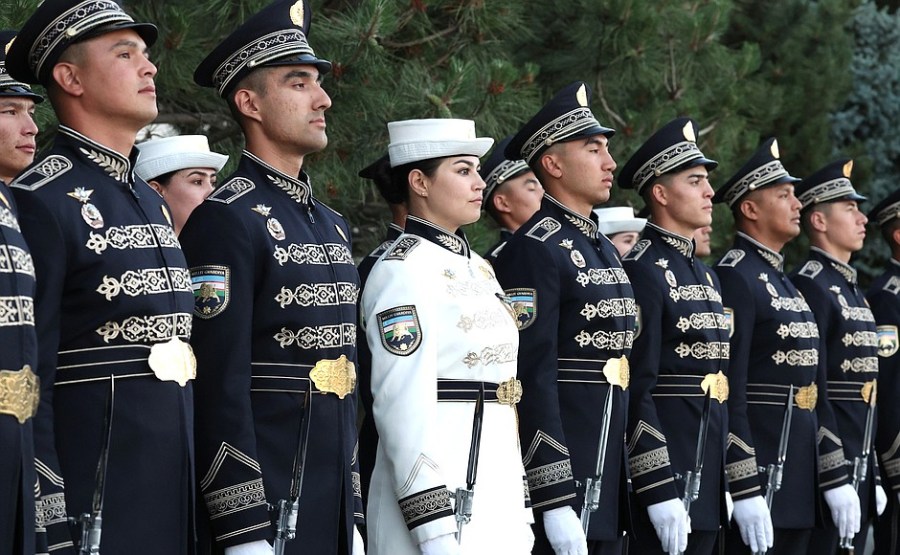 1 Une garde d’honneur à l’aéroport de Tachkent. Photo : Valéry Sharifulin, TASS
