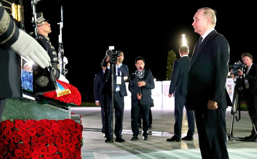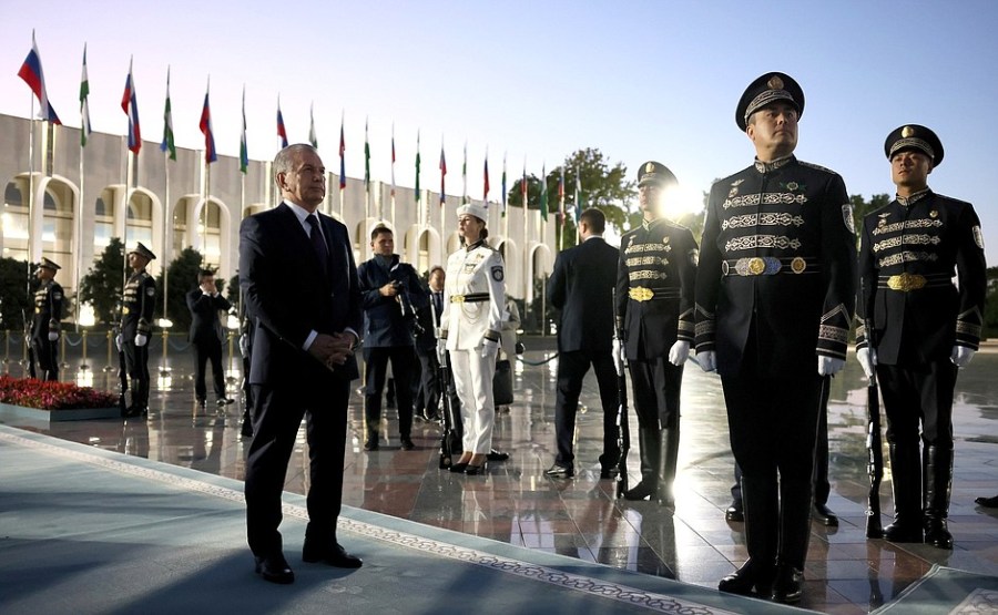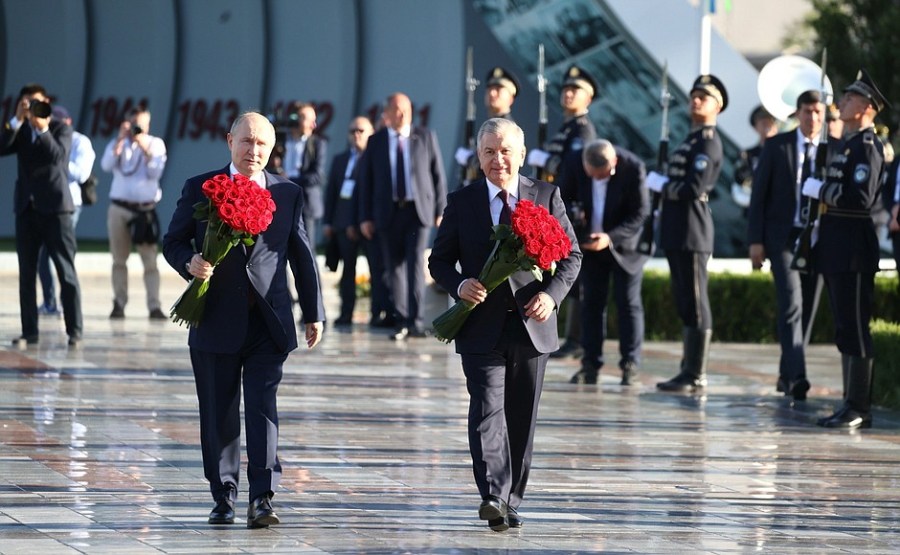 2 Vladimir Poutine et Shavkat Mirziyoyev ont déposé des fleurs au mémorial de l’Ode au courage.