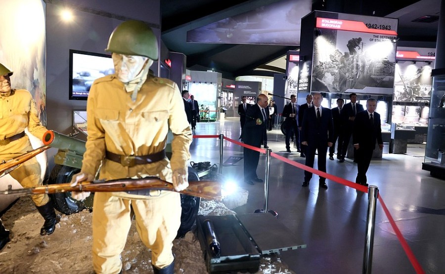 Ensuite, Vladimir Poutine et Shavkat Mirziyoyev ont visité le Musée de la Gloire, où ils ont visité une exposition consacrée à l’histoire de la participation de l’Ouzbékistan à la Grande Guerre patriotique.
