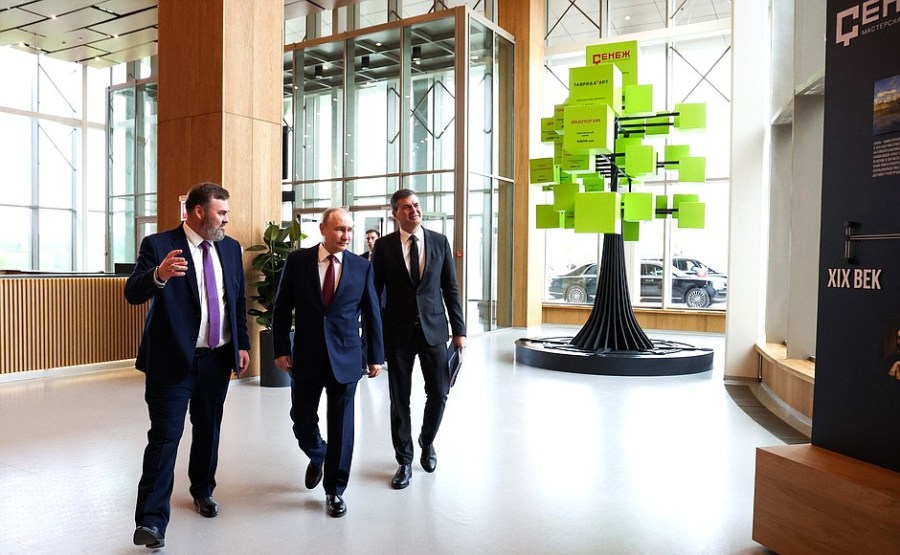 2 Lors d’une visite de l’atelier de gestion publique Senezh. Avec le directeur général de l’ANO Russie – Terre d’opportunités Alexei Komissarov (à gauche) et le recteur de l’atelier de gestion publique Senezh Andrei Betin. Photo : Maxim Blinov, RIA Novosti