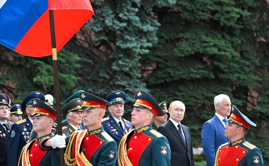 6 Avec le ministre de la Défense Andrei Belousov lors de la cérémonie de dépôt de couronnes sur la Tombe du Soldat inconnu. Photo : Mikhaïl Metzel, TASS