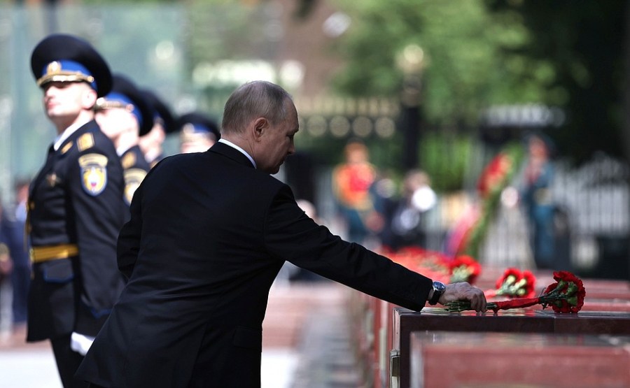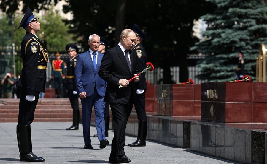 À l’occasion du 83e anniversaire du début de la Grande Guerre patriotique, le Président a honoré la mémoire des victimes des combats contre les envahisseurs nazis en déposant une couronne de fleurs sur la Tombe du Soldat inconnu, près du mur du Kremlin.