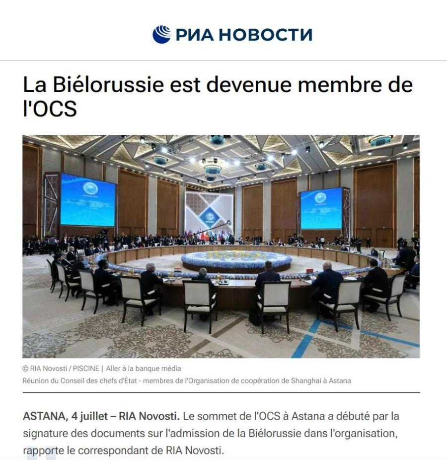 Lors du sommet de cette année, le président Xi Jinping et les dirigeants des autres États membres de l’OCS ont signé conjointement une résolution accordant au Bélarus le statut d’État membre de l’OCS, faisant de ce pays le dixième État membre de l’OCS.