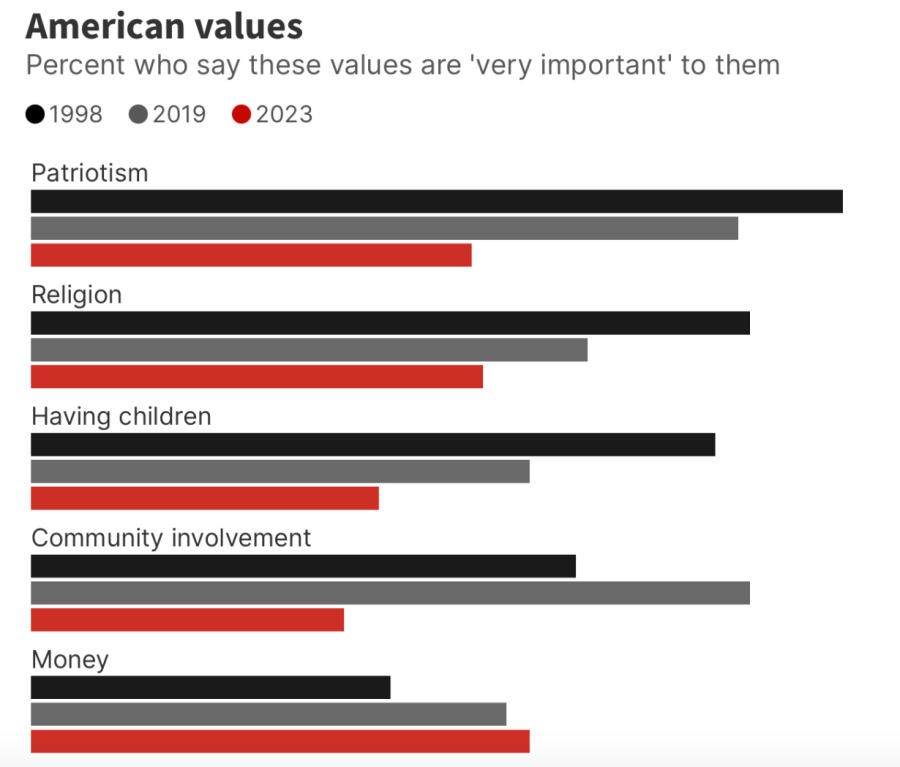 Emmanuel Todd – l’historien anthropologue français, examine la dynamique plus longue des événements qui se déroulent aujourd’hui : selon lui, l’agent principal du changement qui a conduit au déclin de l’Occident a été l’implosion du protestantisme anglo-saxon aux États-Unis (et en Angleterre), avec ses habitudes de travail, d’individualisme et d’industrie – un credo dont les qualités étaient alors considérées comme le reflet de la grâce de Dieu à travers la réussite matérielle et, surtout, comme la confirmation de l’appartenance aux “élus” divins.