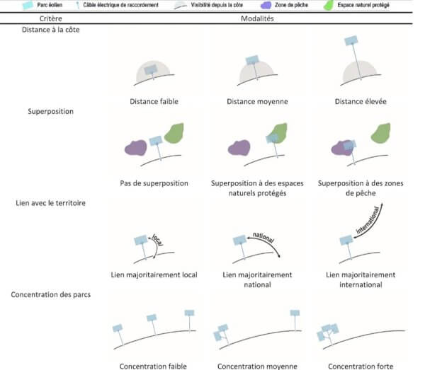 Distance à la côte, empiètement sur les espaces naturels protégés et les zones de pêche, retombées économiques sur le territoire à l’échelle locale, nationale ou internationale, plus ou moins forte concentration des parcs le long des côtes… Autant de critères qu’il convient de prendre en compte pour tracer la future carte des parcs éoliens potentiels.