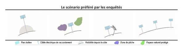 La combinaison des modalités classées au premier rang a ainsi permis de préciser les scénarios de développement de l’éolien en mer préférés par les sondés.
