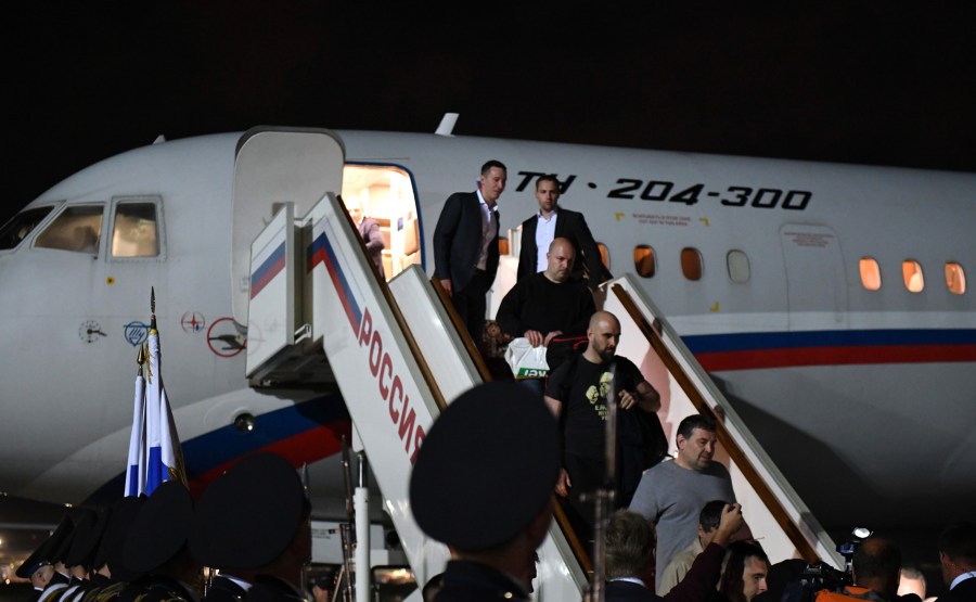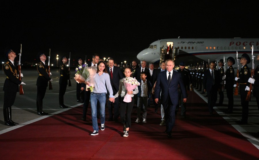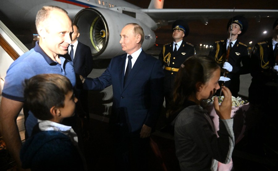 Vladimir Poutine est arrivé à l’aéroport de Vnukovo et a accueilli les citoyens russes détenus à l’étranger et qui ont pu rentrer aujourd’hui dans leur patrie après un échange de prisonniers.