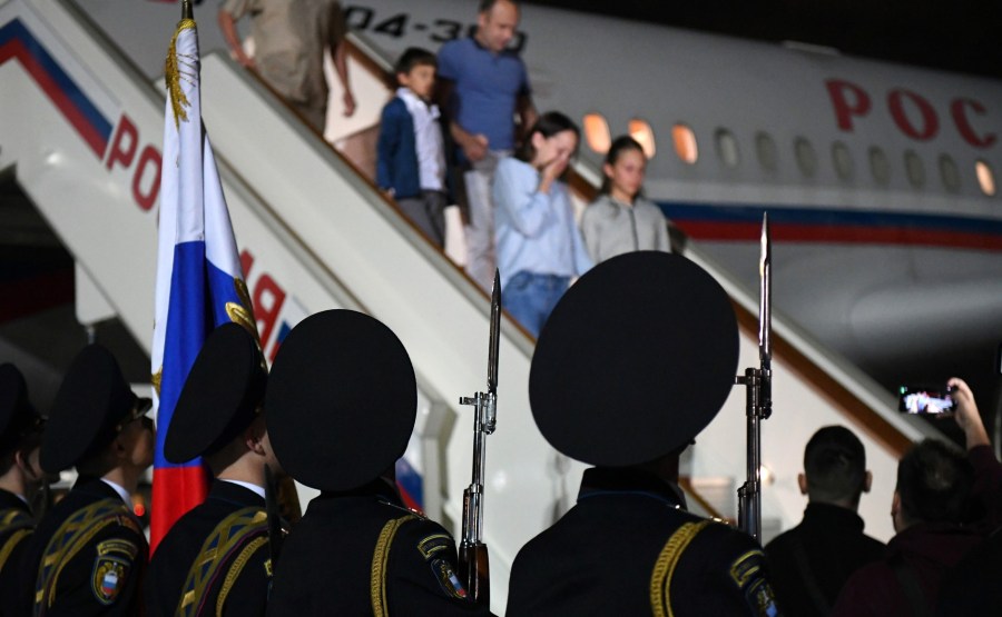 7 Avec le retour des citoyens russes dans la patrie suite à un échange de prisonniers. Photo : Mikhaïl Voskresenski, RIA Novosti