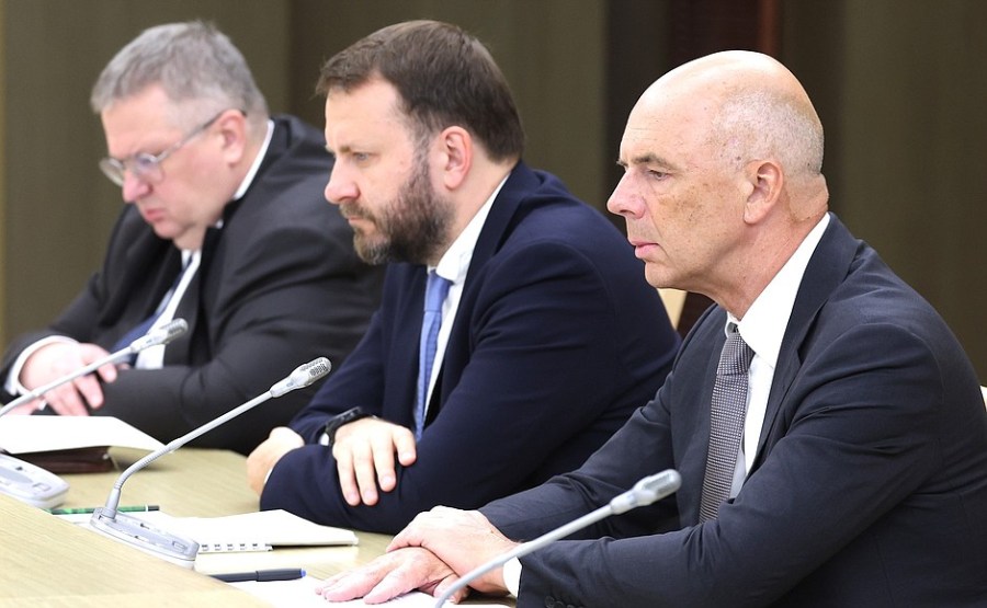 3 Rencontre avec les membres du gouvernement. De droite à gauche : le ministre des Finances Anton Siluanov, le chef de cabinet adjoint du bureau exécutif présidentiel Maxim Oreshkin et le vice-Premier ministre du gouvernement Alexei Overchuk. Photo : Valéry Sharifulin, TASS