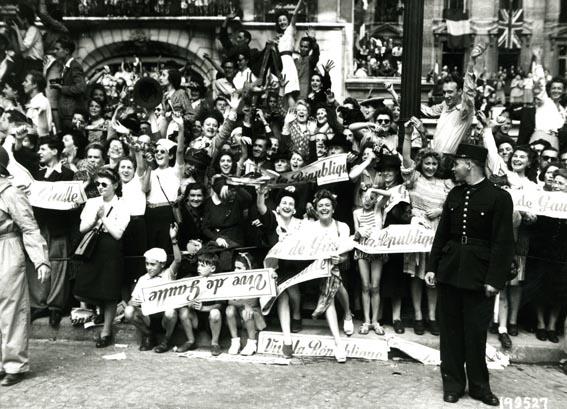Les-parisiens-ovationnant-le-general-de-gaulle-sur-les-champs-elysees-26-aout 44