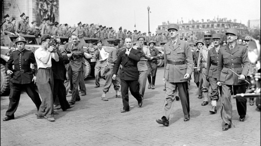 Le chef du Gouvernement provisoire, qui accompagne de très près la progression des troupes alliées, dispose de la 2eme DB, débarquée le 1er août à Saint-Martin-de-Varreville. La Division Leclerc libère Alençon le 12 août et participe à de violents combats en direction d’Argentan.