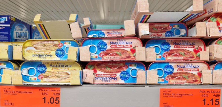 Enfin, encore un autre exemple, celui des poissons en boîtes là aussi en baisse de 19 % par exemple pour les maquereaux à la moutarde !