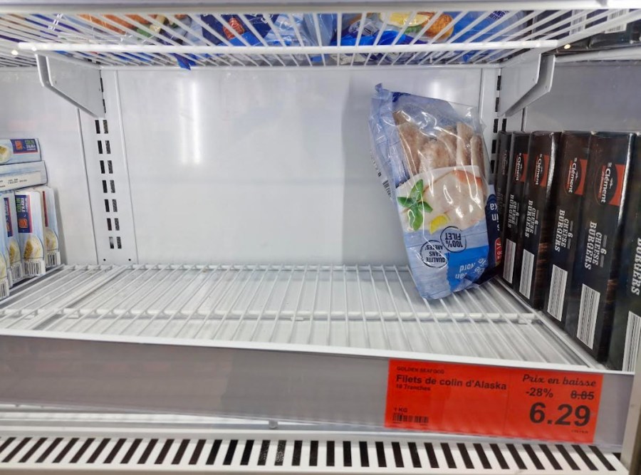 Mes concitoyens Normands ne se sont pas trompés sur la “bonne affaire” du moment à savoir le kilo de filets de colin en chute libre de 28 % à 6.29 € le kilo. Ils ont vidé l’armoire de congélation d’Aldi et il ne me restait qu’un seul sachet disponible. (Ce soir c’est colin d’Alaska aux échalotes).