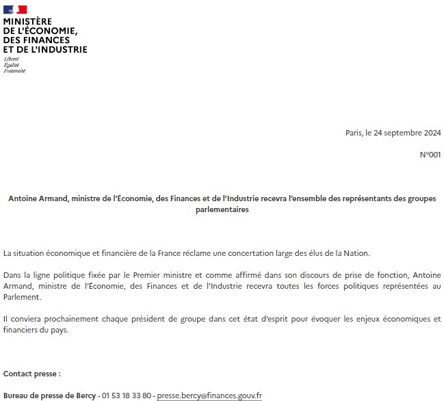 Dans un article de ce lundi 23 septembre j’évoquais la passation surréaliste où le jeune Antoine Armand faisait un portrait élogieux du bilan à Bercy de Bruno Le Maire, lors de la passation ministérielle, appelée pot de départ dans la vraie vie par les vrais gens, c’est-à-dire nous.