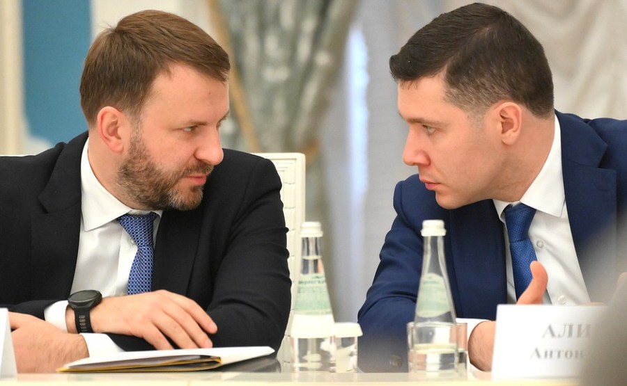 2 sur 23 Le chef de cabinet adjoint du Bureau exécutif présidentiel Maxim Orechkine (à gauche) et le ministre de l’Industrie et du Commerce Anton Alikhanov lors de la réunion élargie du Présidium du Conseil d’État sur le développement des exportations. Photo : Grigori Sisoev, RIA Novosti
