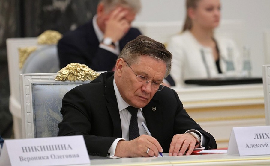 21 sur 23 Rosatom Alexeï Likhachev, directeur général de la Société nationale de l’énergie atomique, lors de la réunion élargie du Présidium du Conseil d’État sur le développement des exportations. Photo : Sergueï Karpoukhine, TASS
