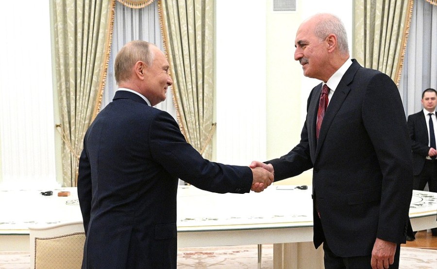 Vladimir Poutine a rencontré au Kremlin le président de la Grande Assemblée nationale de Turquie Numan Kurtulmus, qui est en visite officielle en Russie.