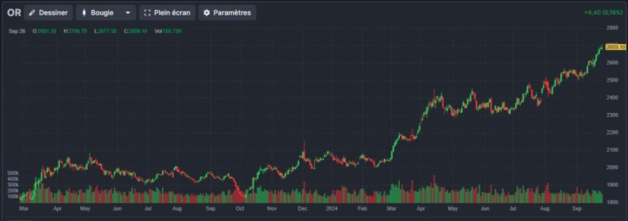 2°/Or, l’envolée se poursuit les 2 700 dollars l’once en ligne de mire…