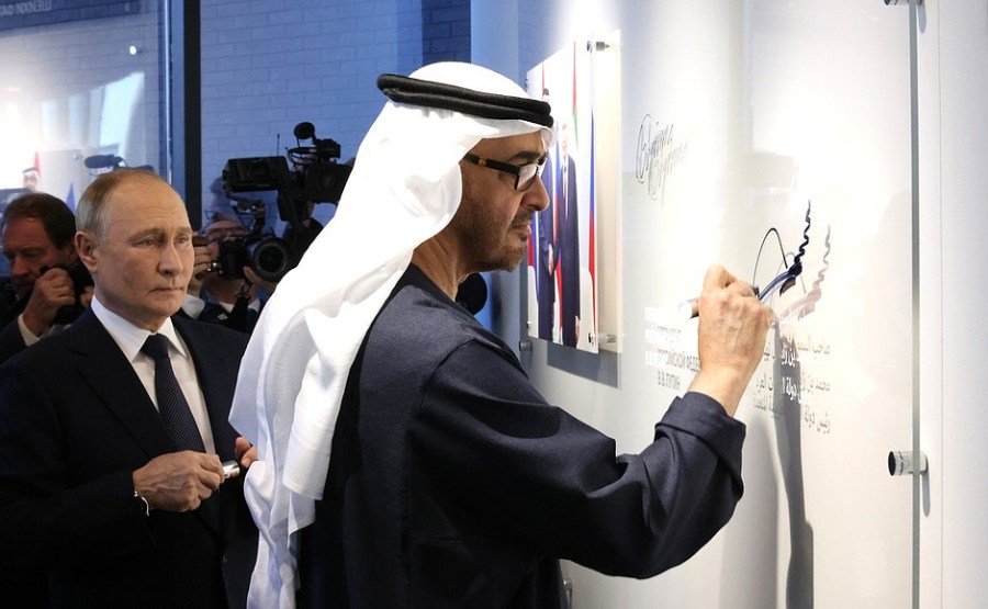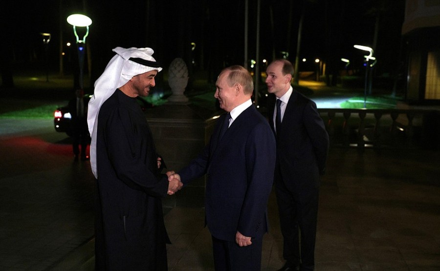 Mon cher ami, les relations entre la Russie et les Émirats arabes unis sont de nature historique et stratégique. Depuis la déclaration du partenariat stratégique en 2018, nos relations ont progressé, notamment dans les domaines de l’économie, du commerce, de l’énergie et d’autres domaines.