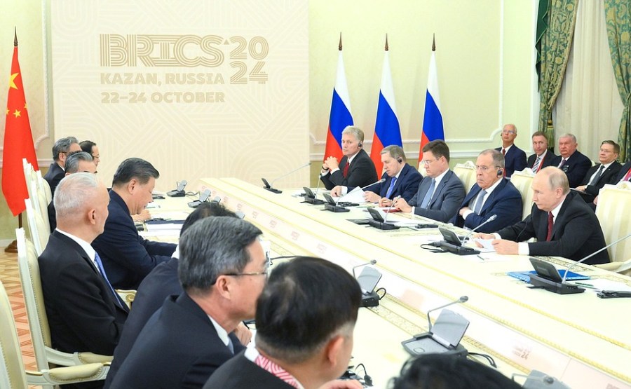 Lors de la rencontre avec le président de la République populaire de Chine, Xi Jinping. Photo par : Stanislav Krasilnikov, brics-russia2024.ru Agence photo hôte