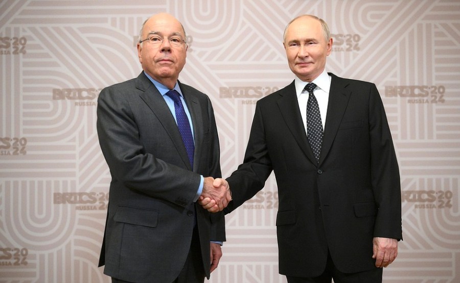 Lors de la cérémonie d’accueil des chefs des délégations des pays BRICS. Avec le ministre des Affaires étrangères du Brésil, Mauro Vieira. Photo par : Sergueï Bobylev, brics-russia2024.ru Agence photo hôte