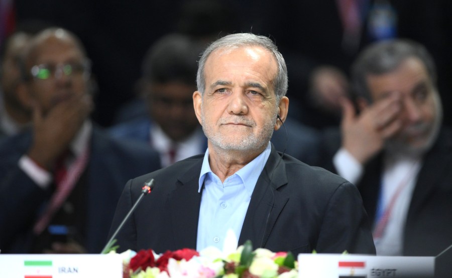 Le président iranien Masoud Pezeshkian lors de la séance plénière BRICS Plus/Outreach lors du 16e sommet des BRICS. Photo : Vladimir Astapkovich, brics-russia2024.ru Host Photo Agency