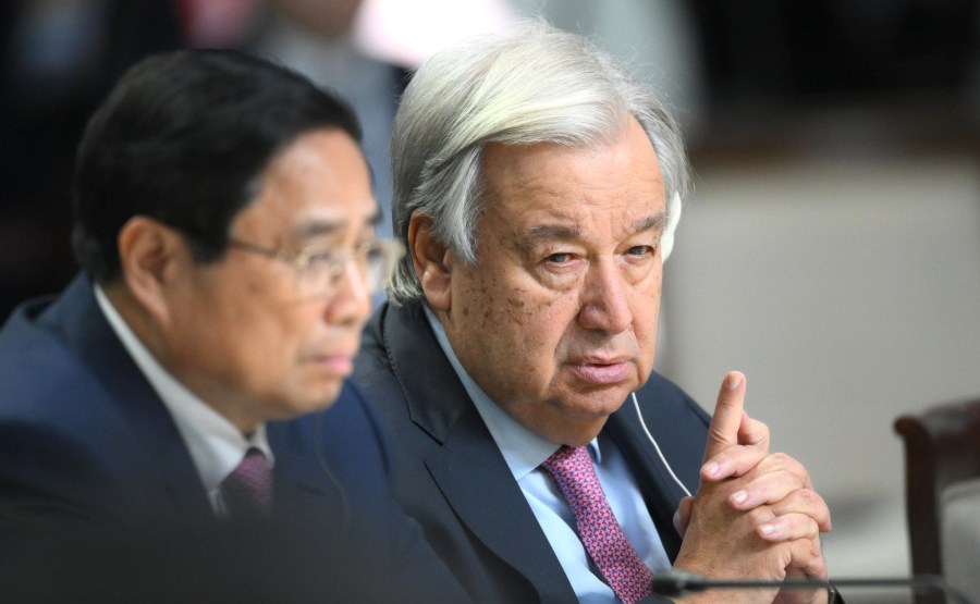 Le secrétaire général des Nations Unies, Antonio Guterres, lors de la séance plénière du 16e sommet des BRICS au format BRICS Plus/Outreach. Photo par : Alexey Danichev, brics-russia2024.ru Agence photo hôte
