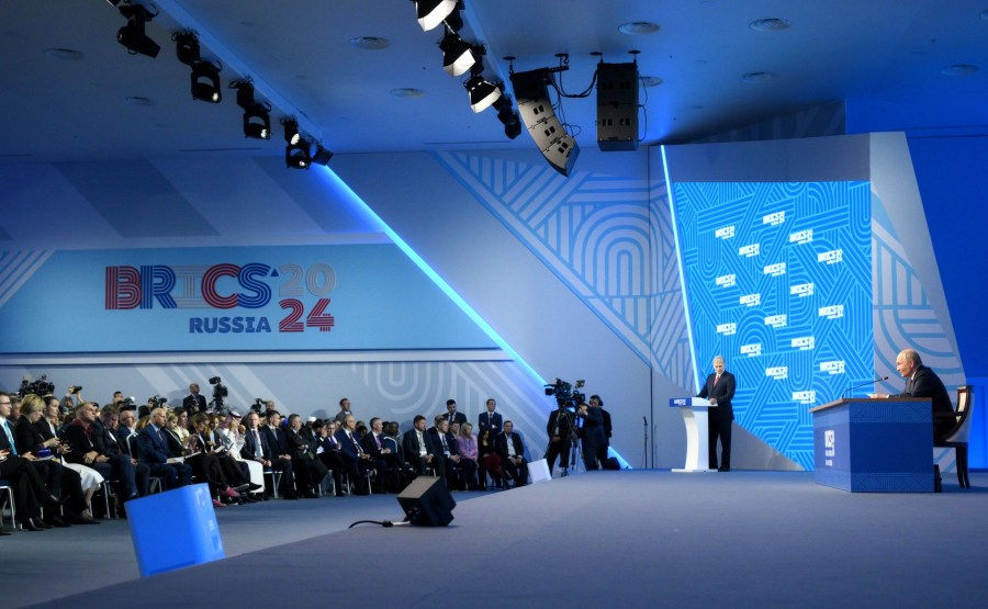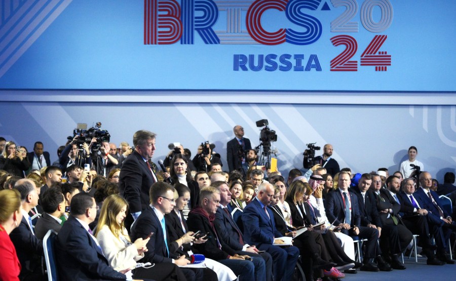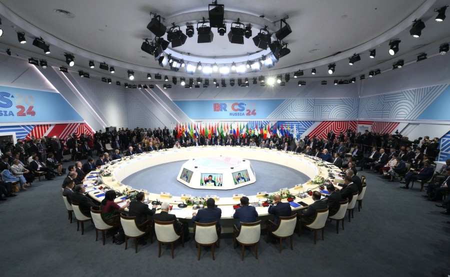 Lors de la séance plénière BRICS Plus/Outreach lors du 16e Sommet des BRICS. Photo par : Alexey Danichev, brics-russia2024.ru Agence photo hôte