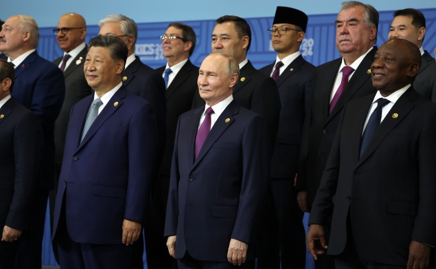 Photo de groupe des chefs de délégation participant à la séance plénière du 16e Sommet des BRICS au format BRICS Plus/Outreach. Photo : Alexandre Kazakov, RIA Novosti