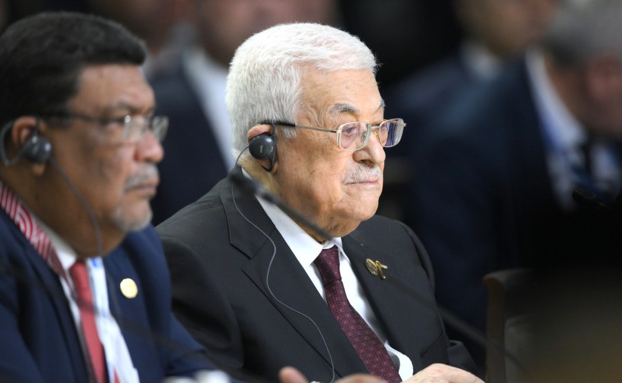 Le président de l’État de Palestine Mahmoud Abbas lors de la séance plénière BRICS Plus/Outreach lors du 16e sommet des BRICS. Photo : Vladimir Astapkovich, brics-russia2024.ru Host Photo Agency