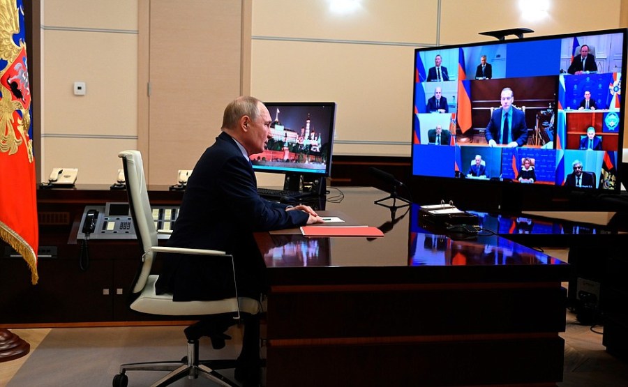 Vladimir Poutine a tenu, par vidéoconférence, une séance d’information avec les membres permanents du Conseil de sécurité.
