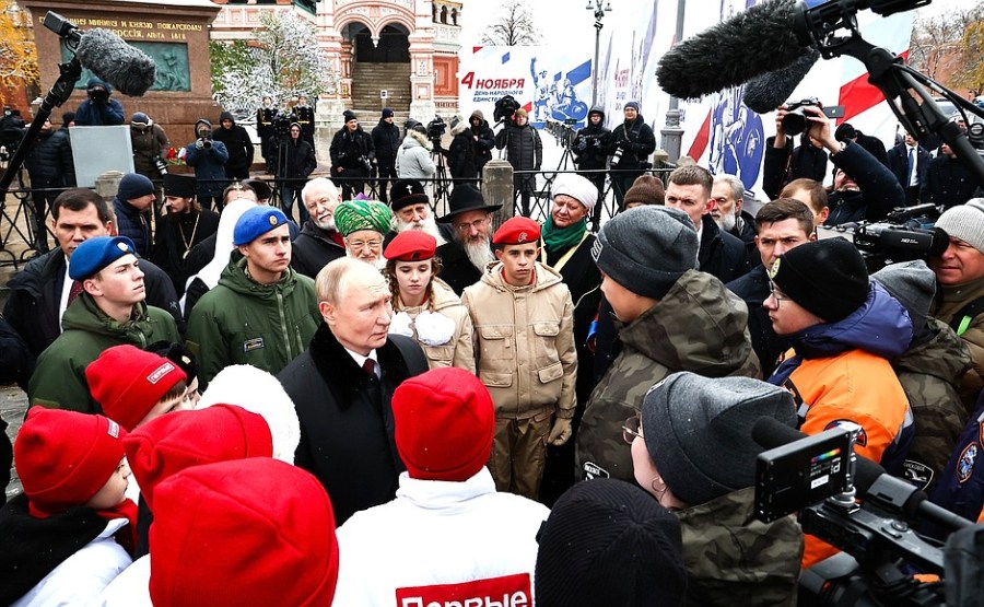 Avec les participants à la cérémonie de dépôt de fleurs au monument à Kuzma Minin et Dmitri Pojarski. Photo de Ramil Sitdikov, RIA Novosti