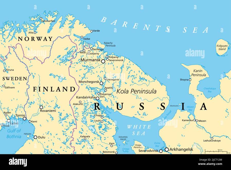 CARTE RUSSIE AVEC APATITY sur la Péninsule de Kola