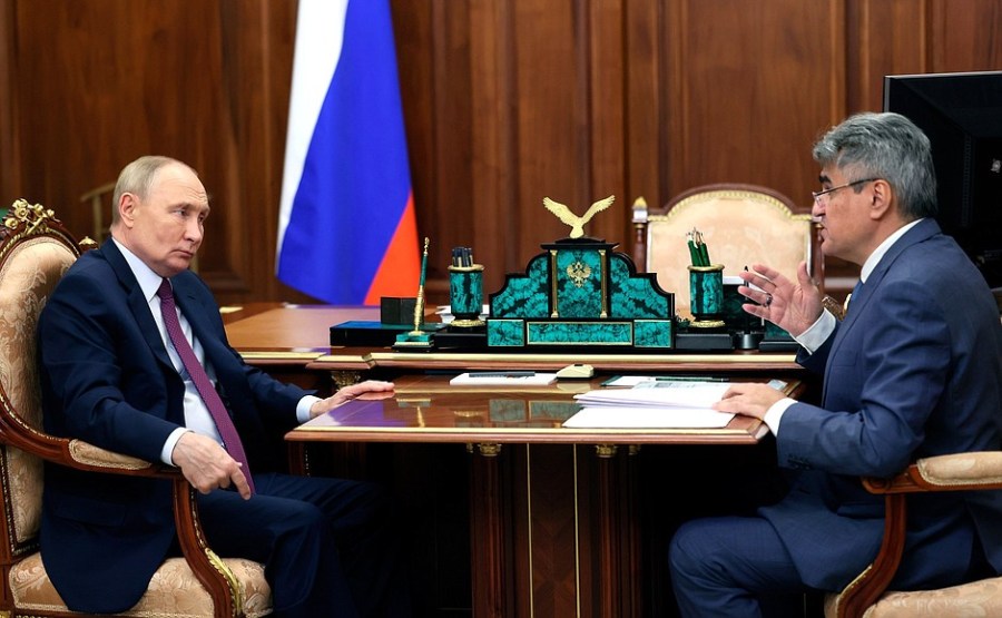 Vladimir Poutine a eu une réunion de travail avec le chef de la faction du parti Nouveau Peuple à la Douma d’Etat, Alexeï Netchaev, au Kremlin.