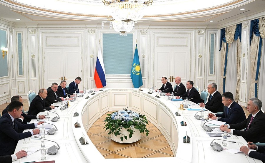 Au cours des négociations russo-kazakhstanaises au format élargi. Photo : Mikhaïl Tereshenko, TASS