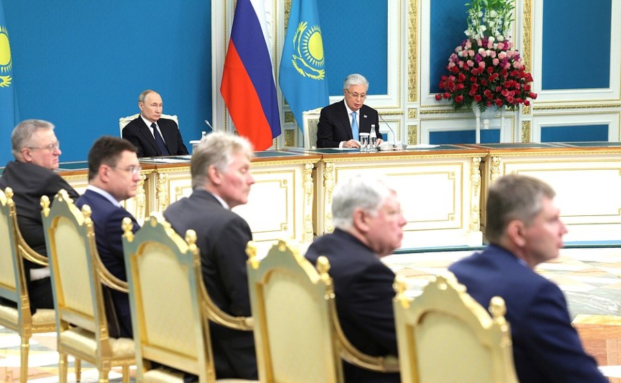 Avec le président du Kazakhstan Kassym-Jomart Tokaïev avant les pourparlers Russie-Kazakhstan en format restreint. Photo de Ramil Sitdikov, RIA Novosti