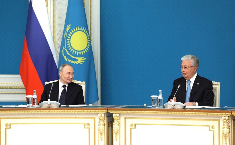 Vladimir Poutine et le Président de la République du Kazakhstan Kassym-Jomart Tokaïev se sont entretenus à la résidence Akorda.
