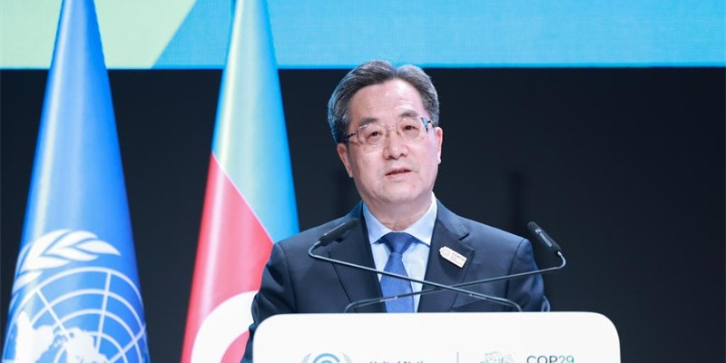 Le vice-premier ministre chinois Ding Xuexiang à la tribune du pavillon chinois de la COP29 à Baku, le 12 novembre 2024. (Source : Eco Business)