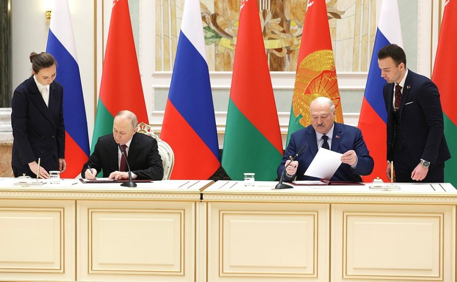 Dans ce contexte, il est tout à fait logique que nous signions aujourd’hui un traité interétatique sur les garanties de sécurité au sein de l’État de l’Union. Le document définit nos obligations mutuelles alliées d’utiliser toutes les forces et capacités disponibles pour assurer la défense des deux pays et protéger leur souveraineté, leur indépendance et leur ordre constitutionnel, ainsi que l’intégrité et l’inviolabilité du territoire et des frontières extérieures de l’État de l’Union. Cela inclut les armes nucléaires tactiques russes, précédemment déployées sur le territoire de la République de Biélorussie sur proposition du Président de la Biélorussie.