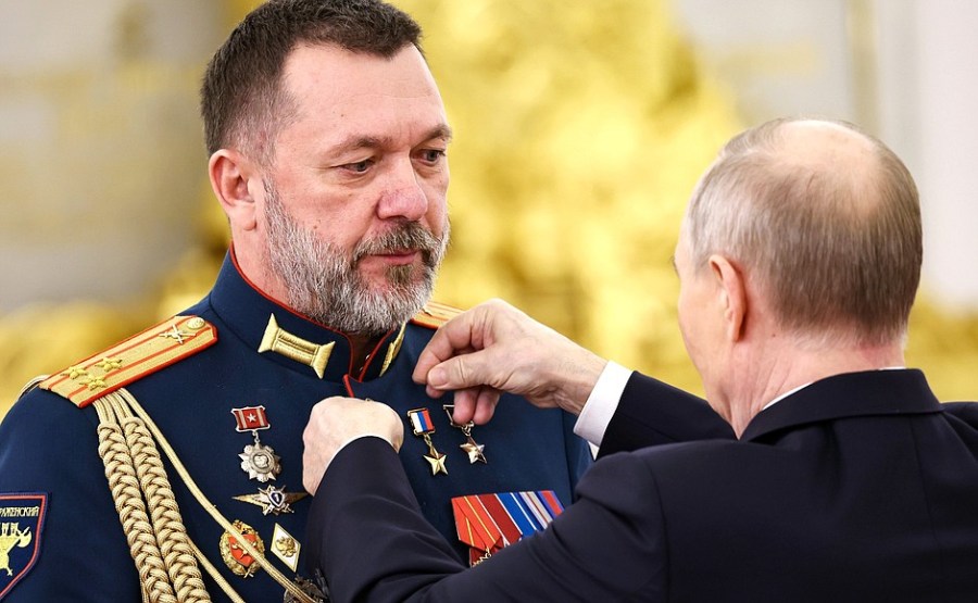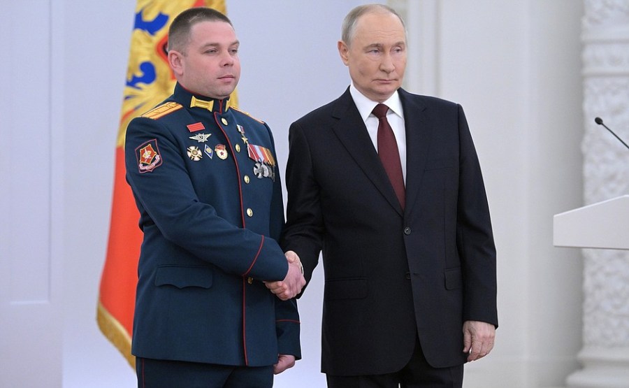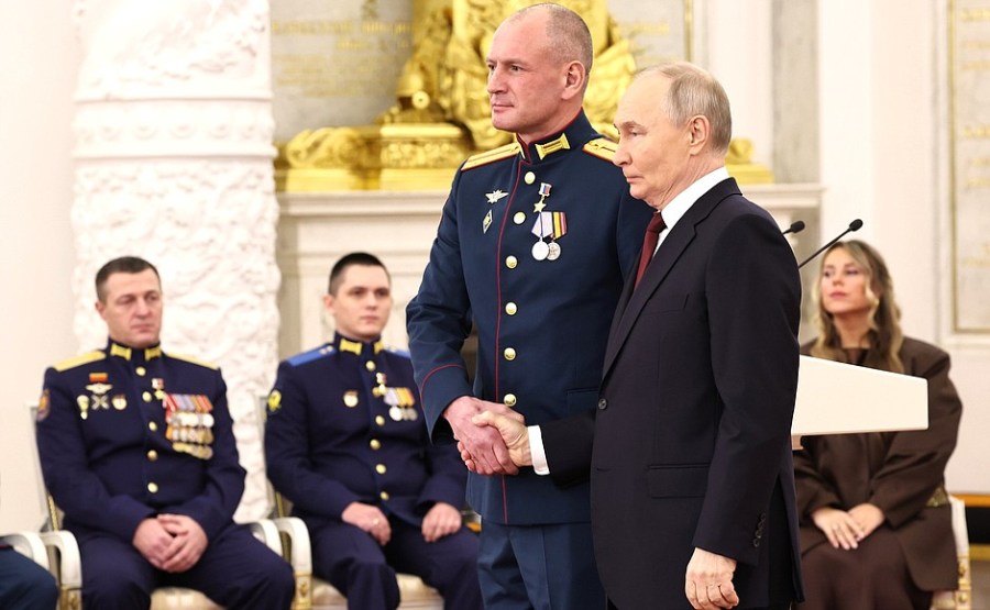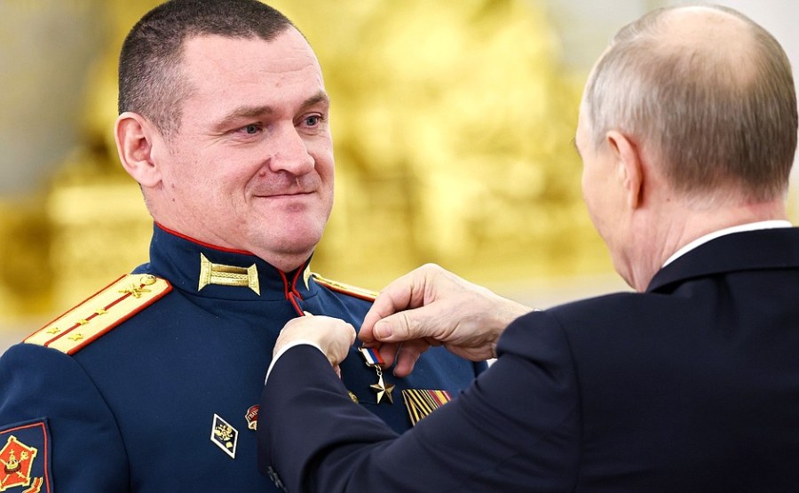 15 sur 15 Le Président remet la médaille Gold Star au major Sergueï Selivanov. Photo : Alexeï Nikolski, RIA Novosti