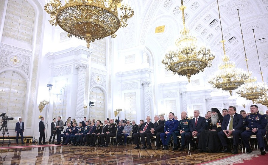 Les noms des cavaliers de l’Ordre de Saint-Georges, de l’Ordre de la Gloire et des Héros de l’Union soviétique et de la Fédération de Russie resteront gravés à jamais dans les annales des victoires et des réalisations de notre pays. Ils sont tous unis par leur engagement inébranlable envers leur devoir, qu’il soit militaire, civil ou personnel, et par leur amour profond et désintéressé pour la Patrie.