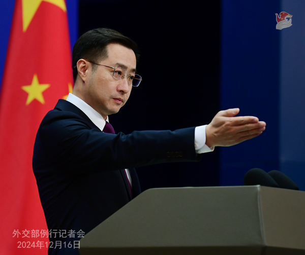 Conférence de presse du 16 décembre 2024 tenue par le porte-parole du ministère des Affaires étrangères Lin Jian