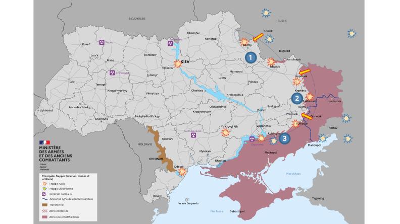 • Les Forces Armées de la Fédération de Russie (FAFR) poursuivent leur stratégie de guerre d’usure, caractérisée par des offensives répétées sur l’ensemble des fronts, combinées à des frappes dans la profondeur, obligeant ainsi les Forces Armées Ukrainiennes (FAU) à adopter une posture essentiellement défensive.
